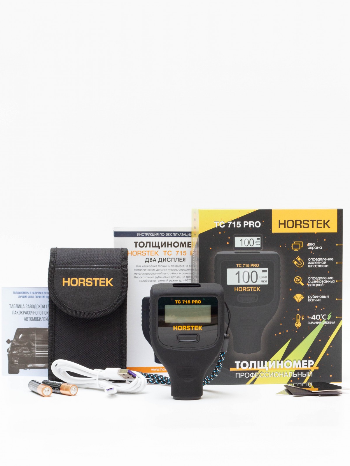 Профессиональный толщиномер Horstek TC 715 PRO - это новая модель 2026 года и передовое поколение, использующее самые современные технологии и мощные компоненты (2-х ядерный процессор, 24BIT аналого-цифровой преобразователь, рубиновый датчик, два дисплея LED + OLED и др.).