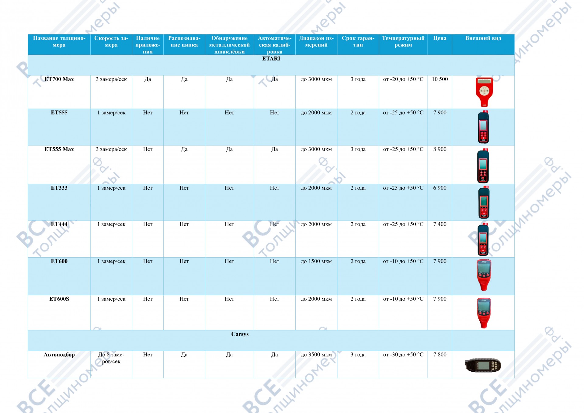 Если Вы сомневаетесь, какую именно модель толщиномера выбрать или Вам нужно просто время подумать и еще "повыбирать", всегда можно открыть данный файл и сравнить характеристики с ценами.